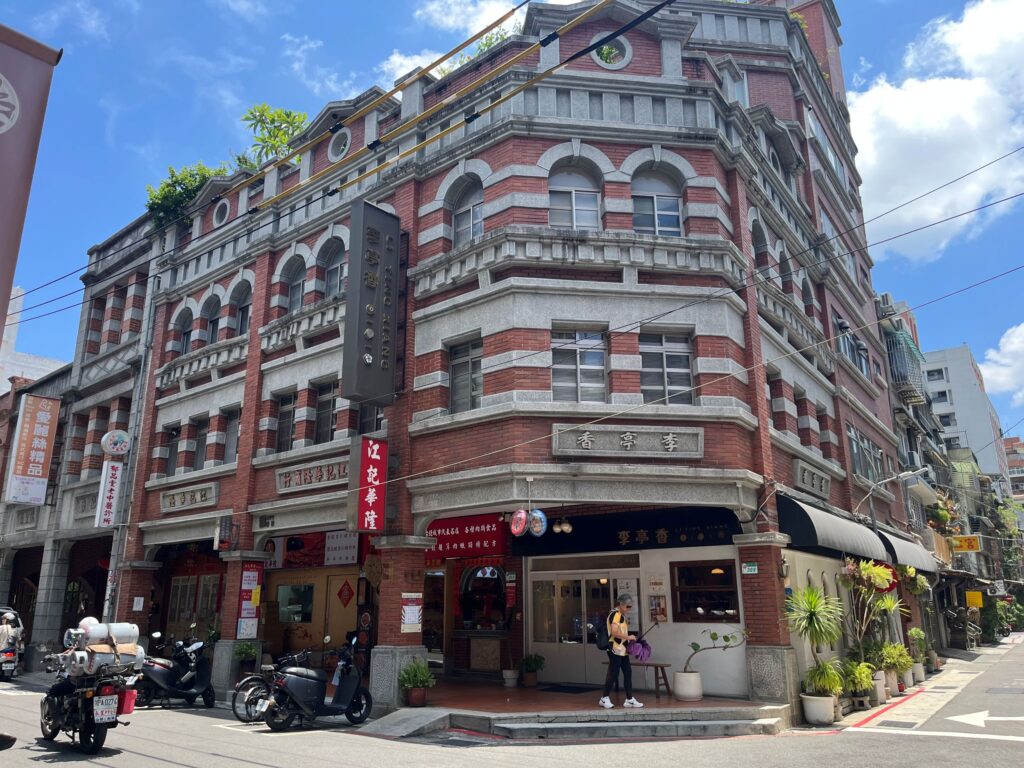 Built during the Japanese colonial period, these buildings were designed as connected shophouses, each one sharing walls with the next. Together, they form a long and impressive row that shows how commercial buildings looked when Dadaocheng was at its busiest.