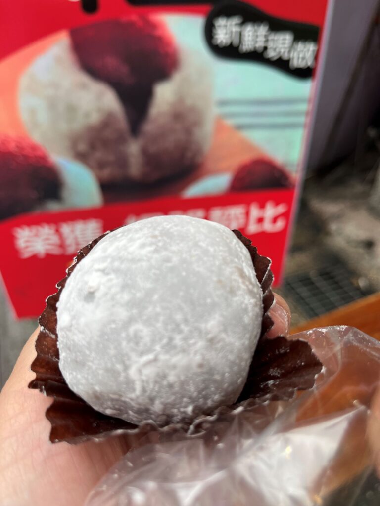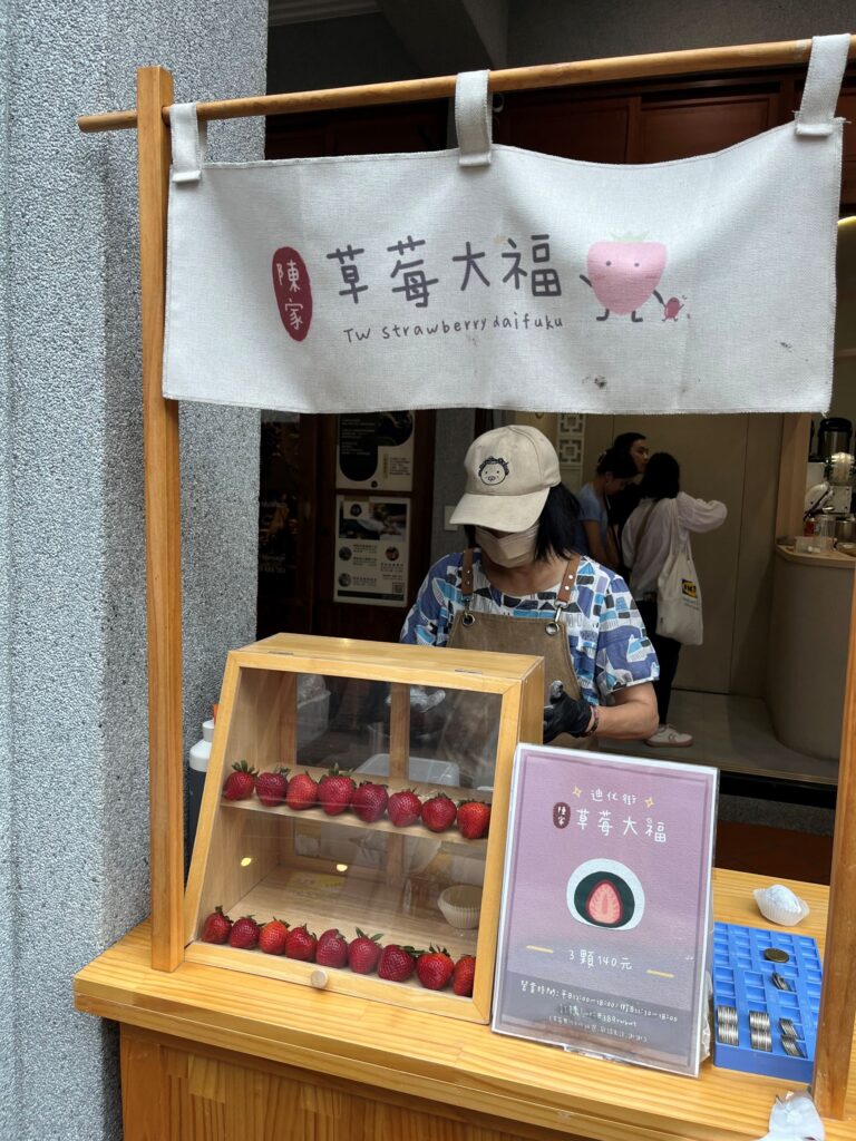 If you visit during strawberry season, you will find several places on Dihua Street selling strawberry daifuku. It is a soft mochi filled with red bean paste and a fresh strawberry.